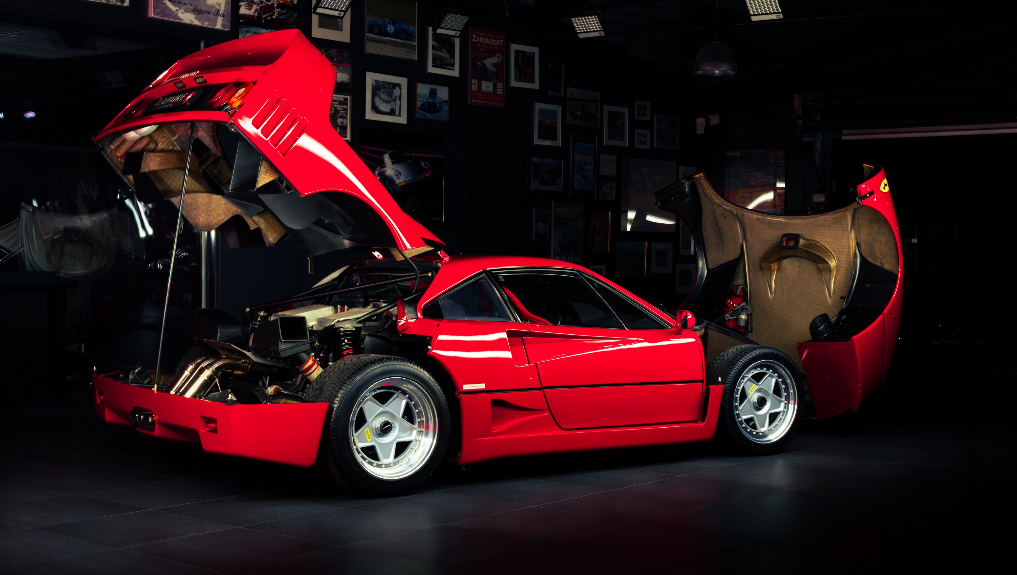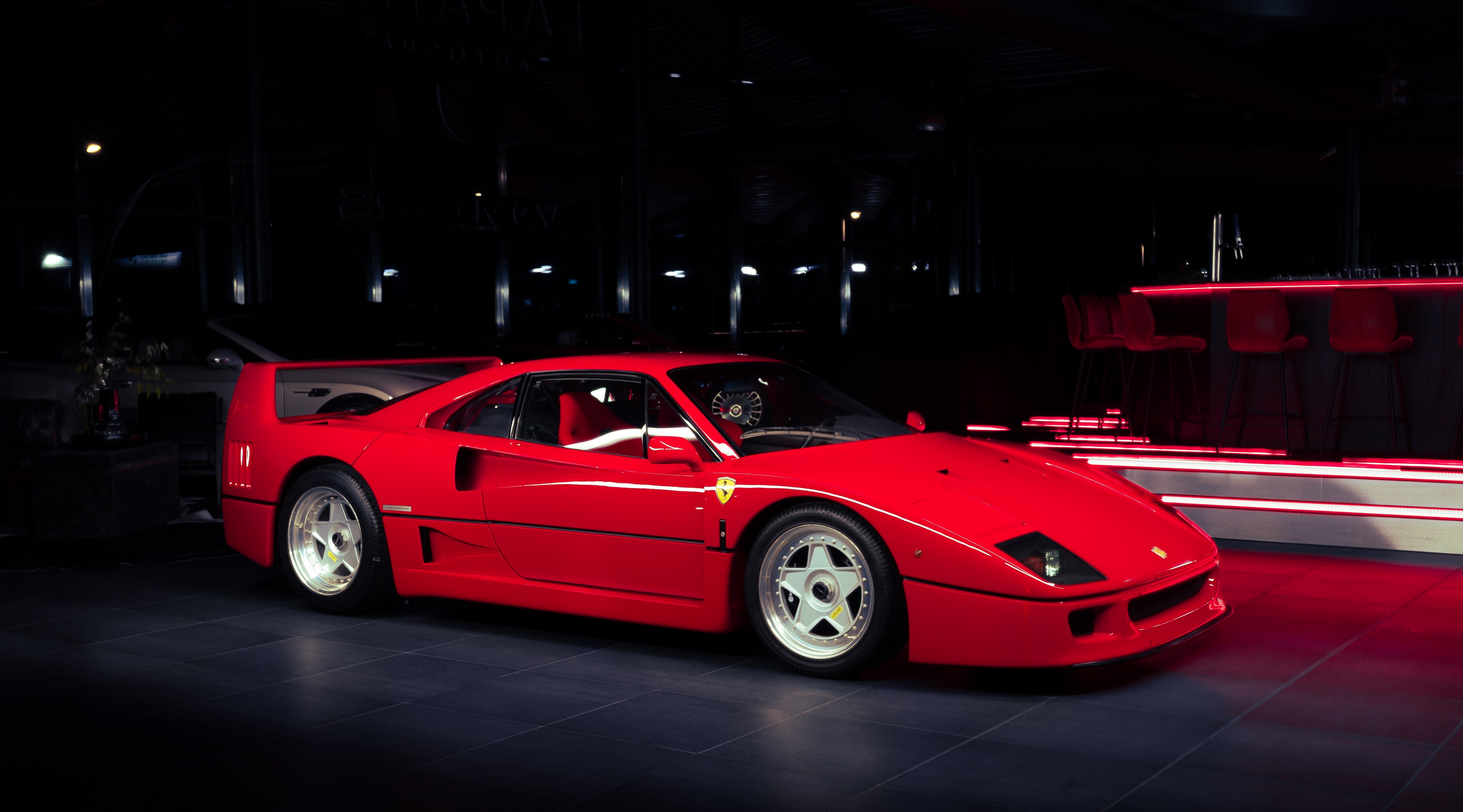 De Ferrari F40 behoeft geen introductie. Gebouwd ter ere van het veertigjarig bestaan van Ferrari en voor velen de laatste pure Ferrari zonder elektronische hulpsystemen. Carbon en kevlar carrosseriepanelen, een 2.9 liter twin turbo V8 en een rijklaar gewicht net boven de 1.100 kilo. Rauw, mechanisch en compromisloos.